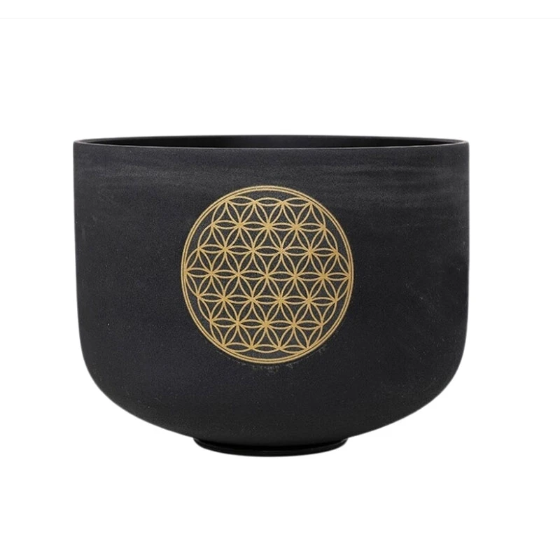 Superbe Bol Chantant Cristal de Quartz Noir avec le motif puissant de la Fleur de Vie. Jouez du bol pour apaiser votre esprit et ressentir ses bienfaits sur votre corps.