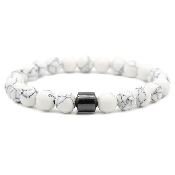 Somptueux Bracelet Homme Perle Blanche en pierres semi-précieuses Howlite. Les vertus de cette pierre vous apporte douceur et amour, rééquilibre les émotions et lutte contre la dépression.