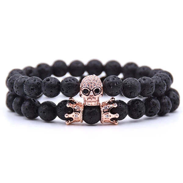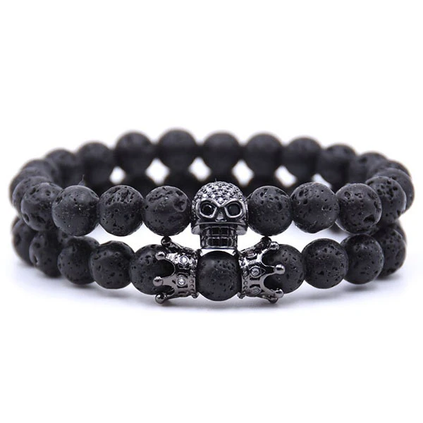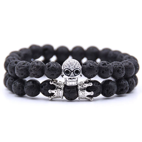Découvrez notre gamme Bracelet Homme Perle Tête de Mort Skullor garni de pierres de lave. Bijou double bracelets pour les vrais hommes qui aiment le danger et qui n’ont peur de rien.