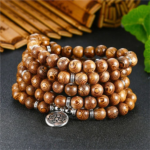 Découvrez notre Bracelet Mala Bois Lotus décoré de 108 perles rondes en bois et d’un médaillon lotus. Se porte en collier ou bracelet autour du poignet.
