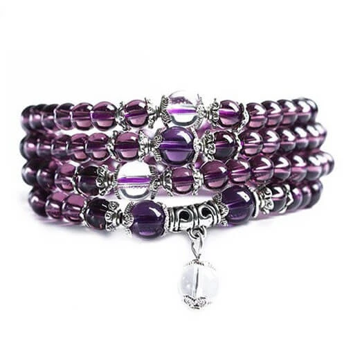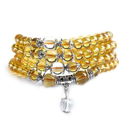 Mala Pierre Semi-Précieuse Zen en perles rondes de citrine ou d’améthyste. Portez ce bijou en bracelet ou collier, aide à la concentration, l’élévation spirituelle et la méditation.