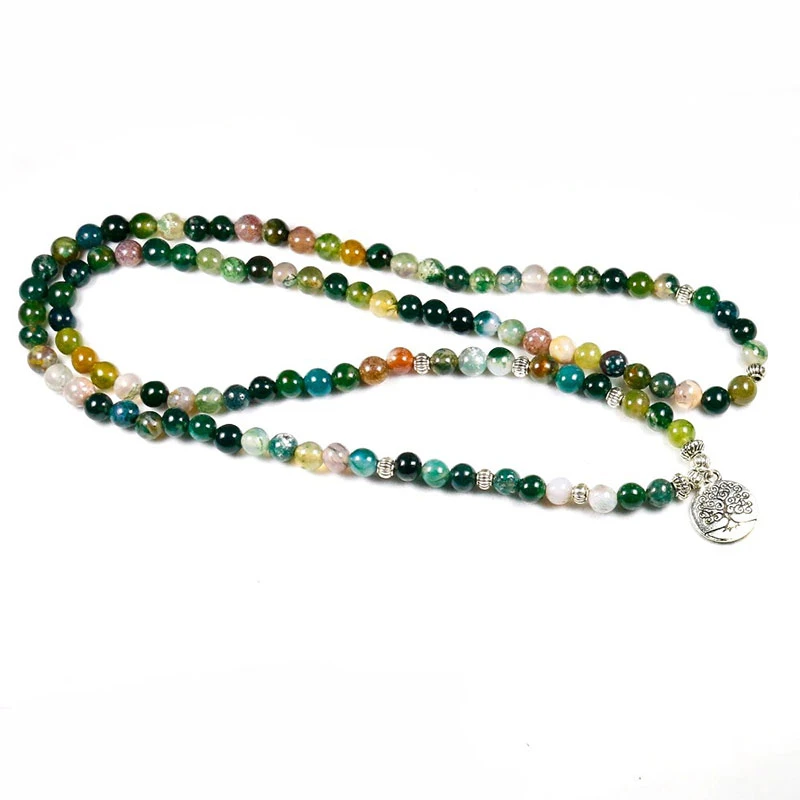Sublime Mala Tibétain Pierres Vertes “Chance” à porter en bracelet ou collier. Bijou d’origine bouddhiste il apporte chance et bonheur à celui qui le porte.
