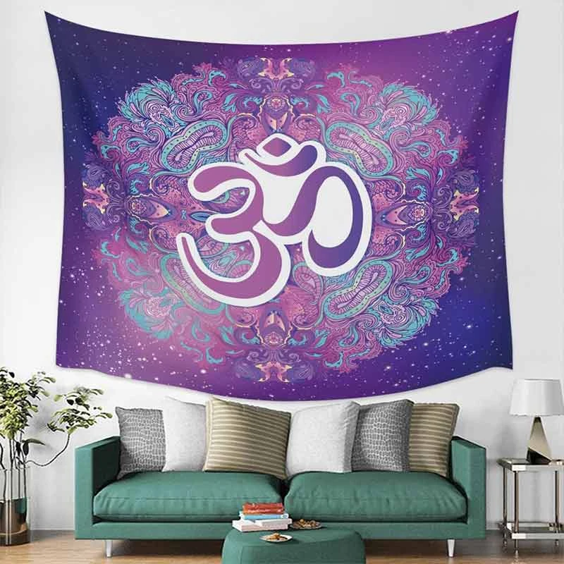 Décorez votre temple bouddhiste avec la Tenture Murale Ohm violette. Une décoration zen pour un espace de détente et de relaxation. Idéal pour les salle de yoga ou de méditation.